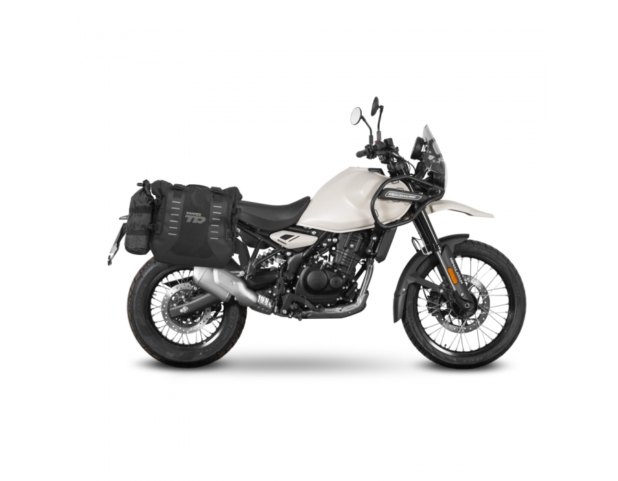 Nos Himalayan 450 sont équipées de crash-bars pour protéger la moto, ainsi que vos cautions en cas de chute ! Un ensemble de bagagerie souple est fourni afin d’accueillir vos affaires au sec ! Une prise Usb C et un porte téléphone sont disponibles au guidon.
