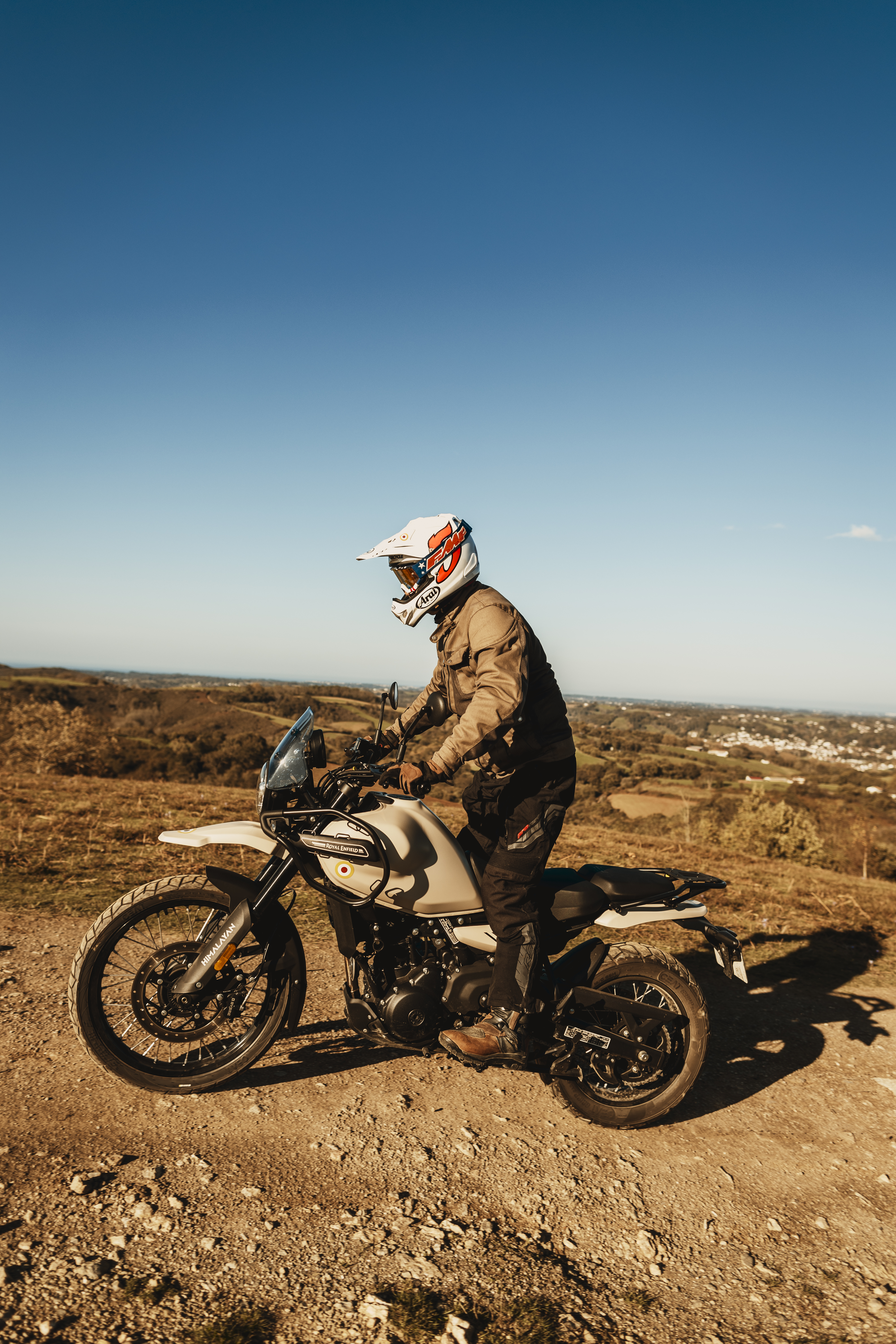 L’Himalayan 450 est une moto très bien équilibrée en partie-cycle avec un centre de gravité bas, le moteur délivre une puissance moyenne et continue qui se montre rassurant et sans mauvaise surprise sur les pistes a l’adhérence aléatoire. Les débutants comme les confirmés y trouveront leur bonheur ! 181 kg à sec, 40 ch, équipé de fourche inversée « SHOWA », 300 km d’autonomie. Elle est vendue pour gravir l’Himalaya, elle vous emmènera donc facilement au delà des Pyrénées !